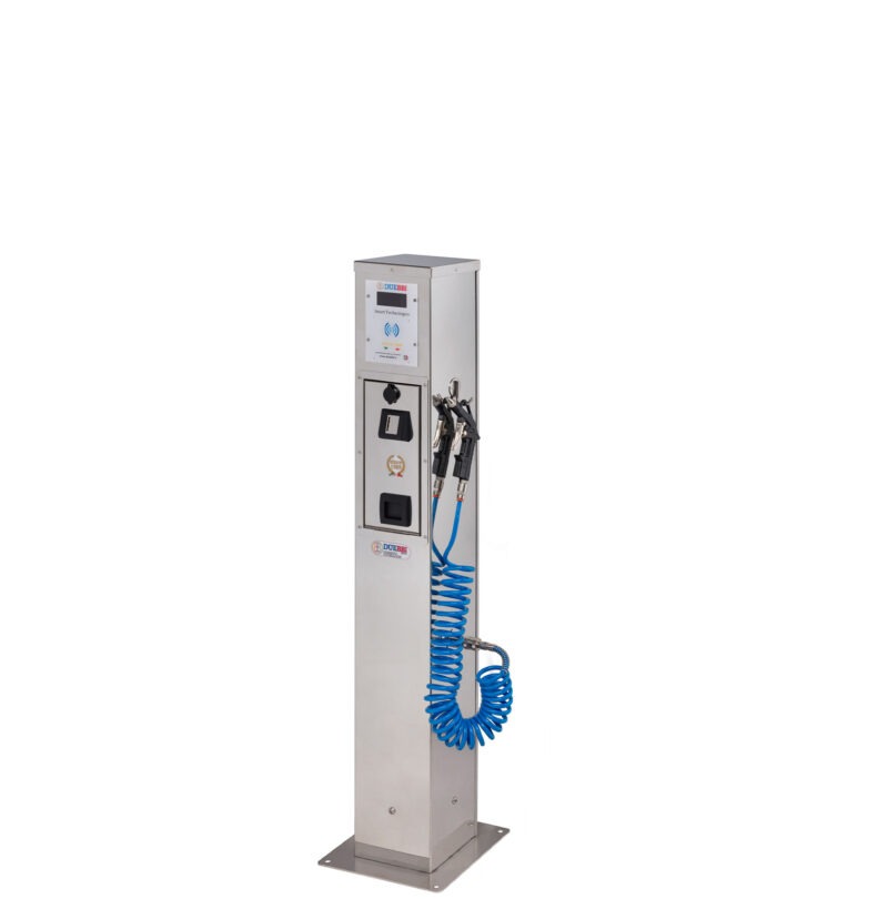 Struttura in acciaio inox AISI 316L, finitura mirror. Colonnina aria 1 o 2 uscite automatizzate con gettoniera e S.E. programmabile tramite display.